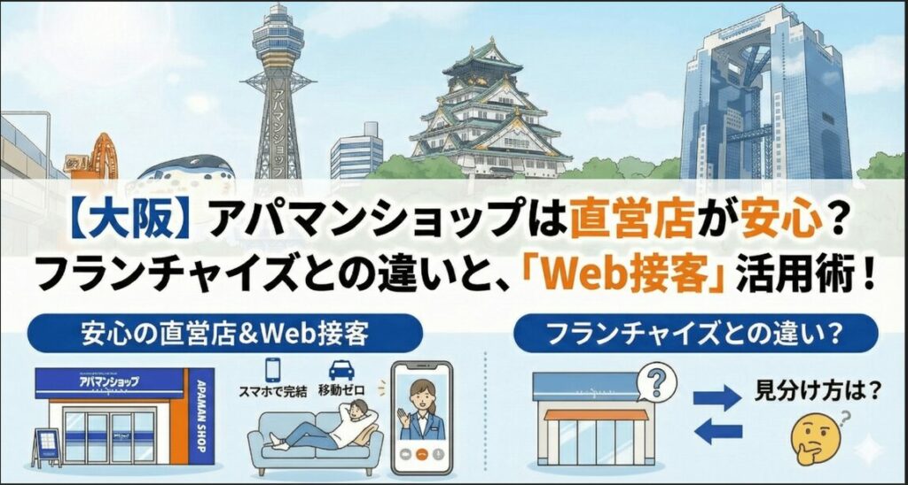 【大阪】アパマンショップは直営店が安心?フランチャイズとの違いと、来店不要の「Web接客」活用術!