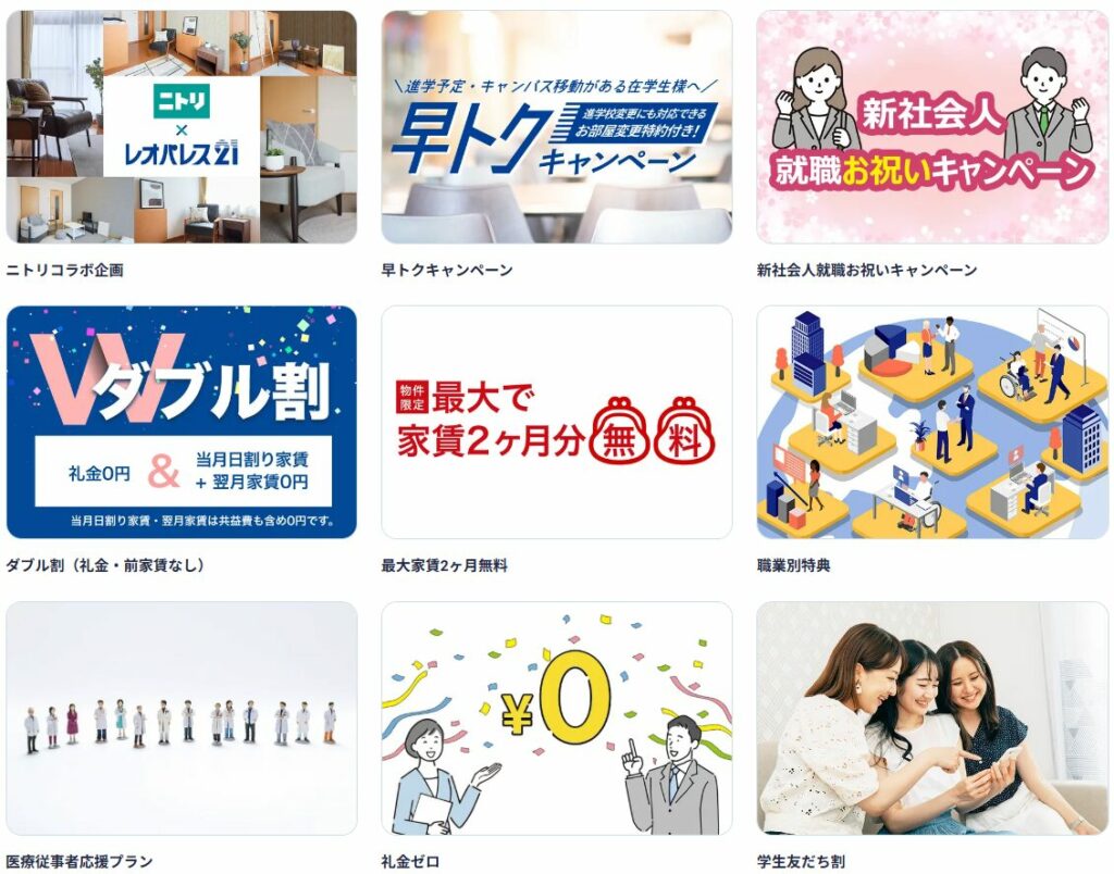 初期費用を抑えたい場合は、敷金・礼金ゼロ物件やキャンペーン物件を探すと良いでしょう。