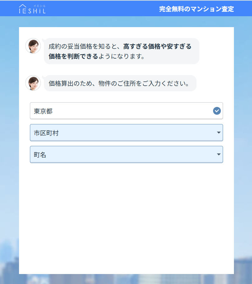 マンション名やエリアを途中で入力して離脱した場合でも、個人情報は未送信の状態なので安心できます。