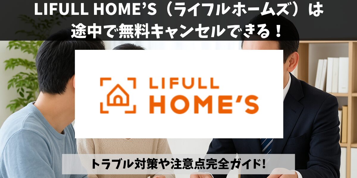 LIFULL HOME’S(ライフルホームズ)、売却査定の申し込み段階であれば完全無料でキャンセルでき、不動産会社への問い合わせ後でも契約前なら費用もトラブルも発生しません。