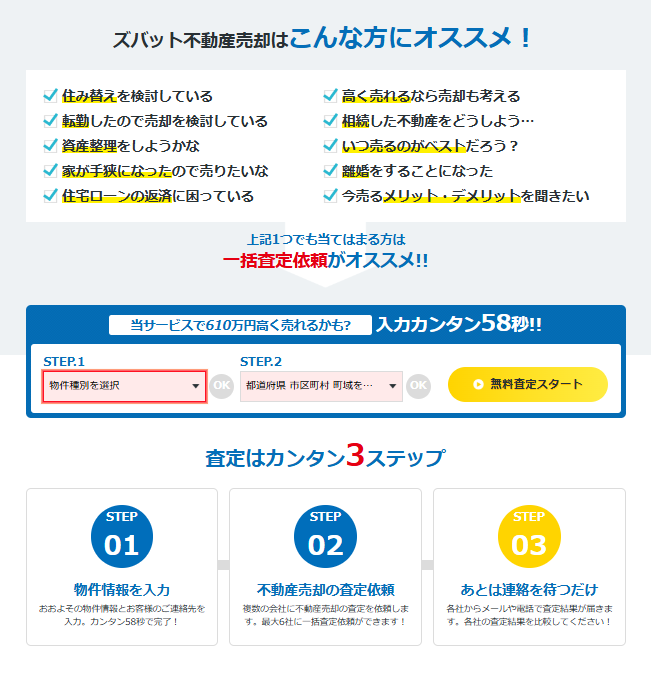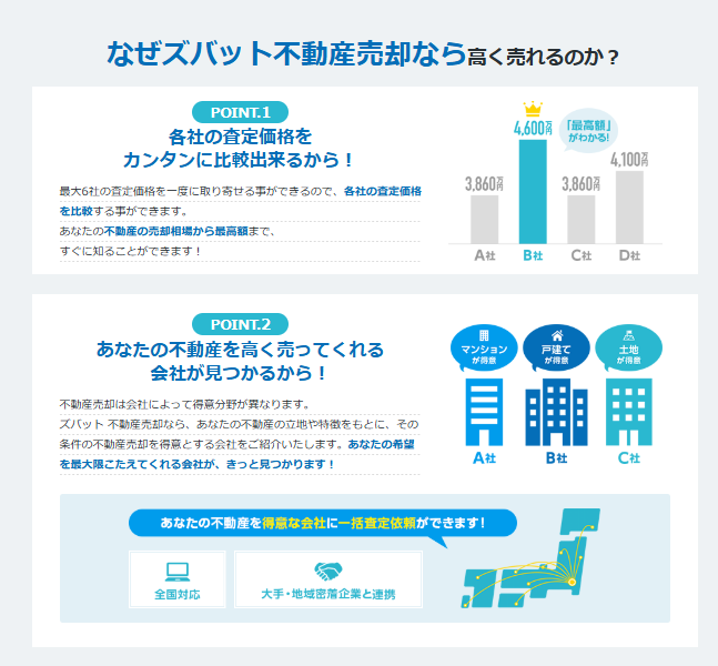 ズバット不動産売却は査定依頼を仲介する仕組みであり、売却契約が自動成立することはありません。