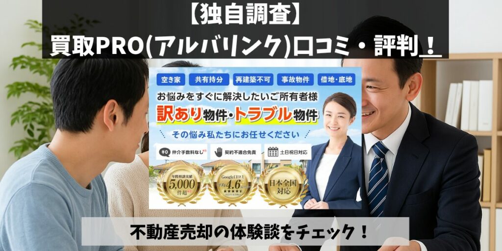 「アルバリンク 買取PRO 口コミ」を調べている方は、訳あり物件の処分に悩み、信頼できる業者を探している方ではないでしょうか。 結論から言えば、アルバリンクは再建築不可や共有持分といった“売りにくい不動産”に対しても積極的に対応してくれる、実績... -