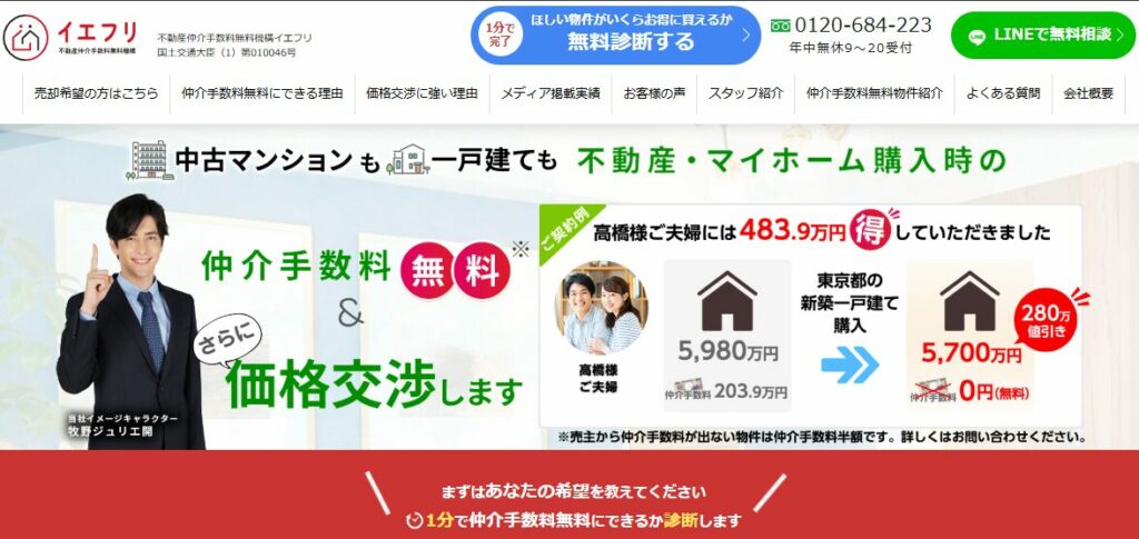 イエフリは仲介業者の中でも「仲介手数料無料」「対応の早さ」「信頼性の高さ」で注目されています。