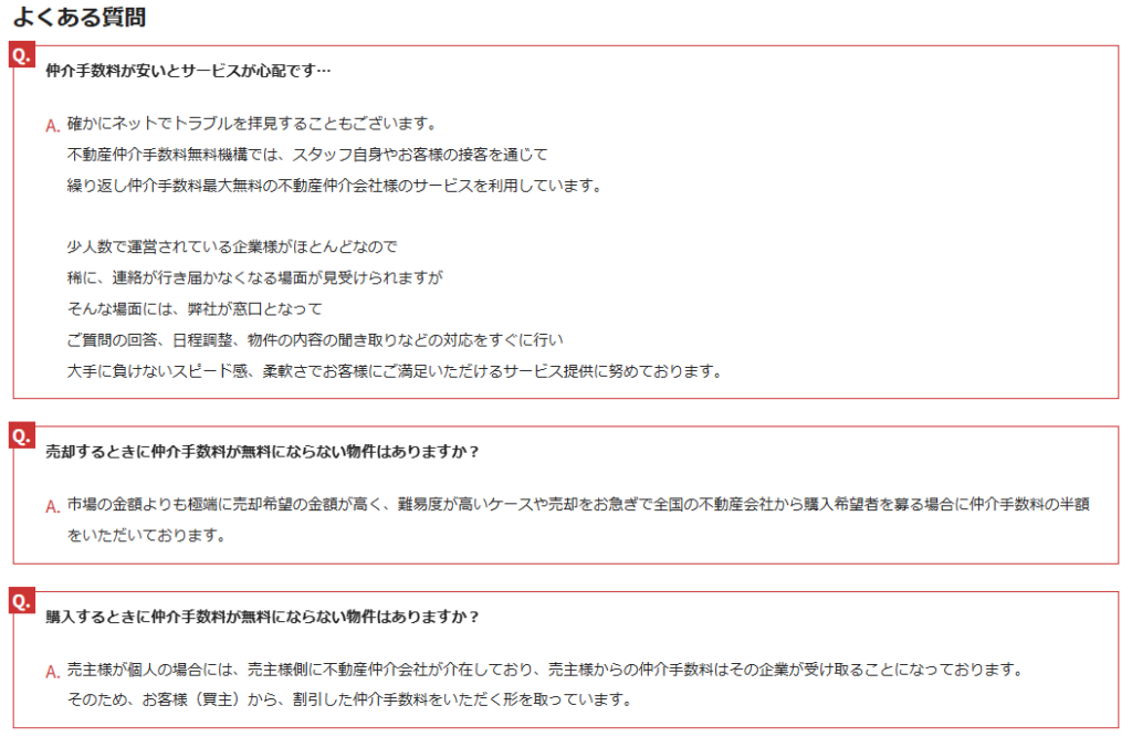A:口コミを見る限り、サポート品質は有料仲介業者と遜色ありません。