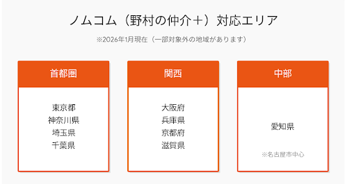 ノムコム(野村の仲介+)は、都市部の売却に特化しているため、対応エリアが限定されています。