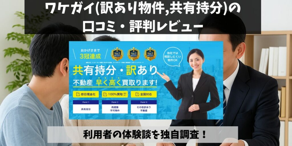 ワケガイ ネクスウィル 口コミを調べると「他社で断られた物件でも売却できた」「査定が早く安心できた」といった声が多く見られます。 結論として、ワケガイ(ネクスウィル)は再建築不可や共有持分といった訳あり不動産に強みを持つ専門業者であり、相... -