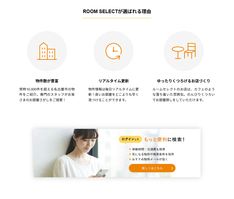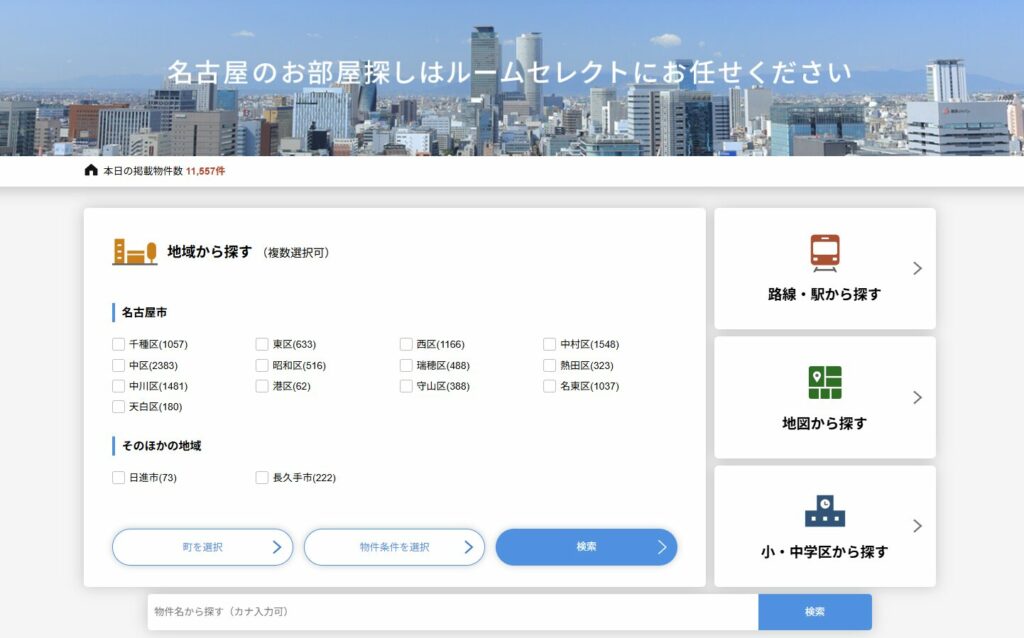 - ルームセレクトは名古屋エリアに特化した賃貸仲介サービスである