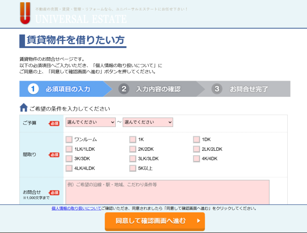 職場の同僚がユニバーサルエステートで物件を契約していて、対応が丁寧だったと聞いたため。取り扱い物件も多く、選択肢が広そうだったからです。