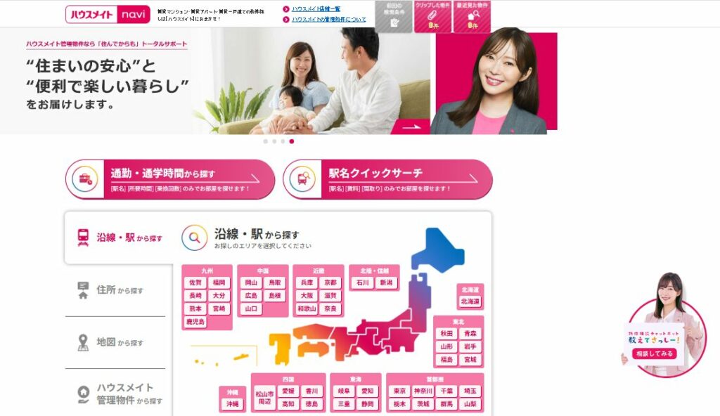 ホームメイト女性にも人気の大手全国対応-敷金礼金ゼロ多数ピンクの看板で女性支持家賃1か月分(キャンペーン時0円あり)