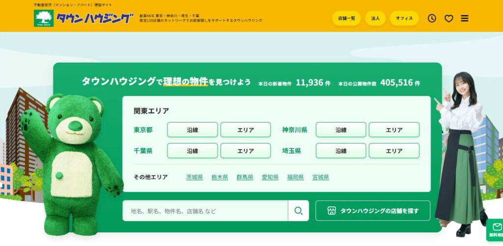 タウンハウジング首都圏強い大手全国対応約40万件敷金礼金ゼロあり首都圏最大級の広さ家賃1か月分