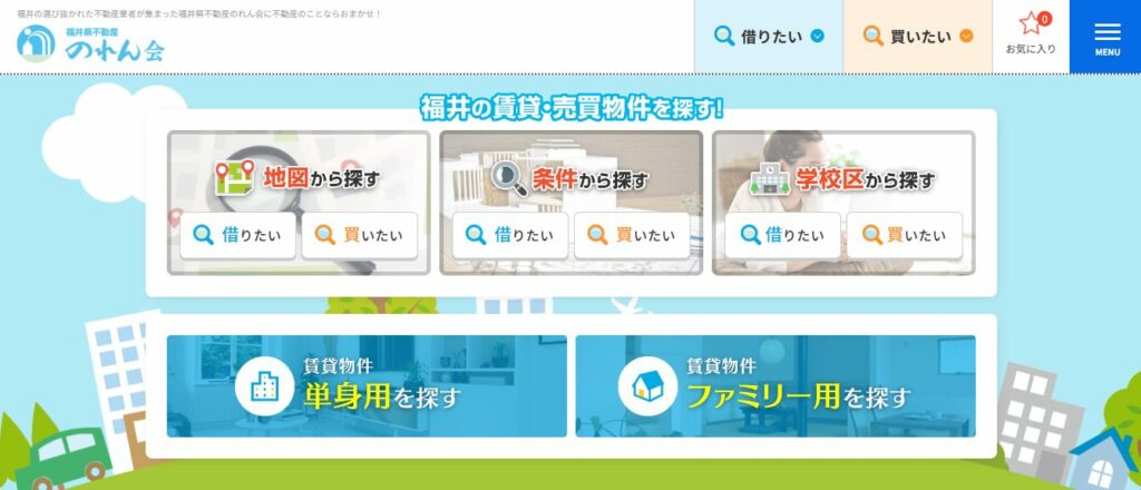 | のれん会 | 福井の暮らしを支える不動産会社 | 福井市中心・近郊 | - | 敷金礼金ゼロあり | 地域密着、親身な対応 | - |