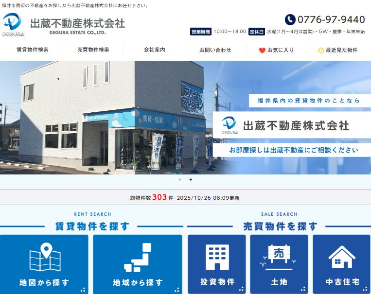 | 出蔵不動産 | 福井市内の賃貸を豊富に扱う会社 | 福井市中心 | 約300件 | 敷金礼金ゼロあり | 地元特化、スピーディな契約対応 | - |