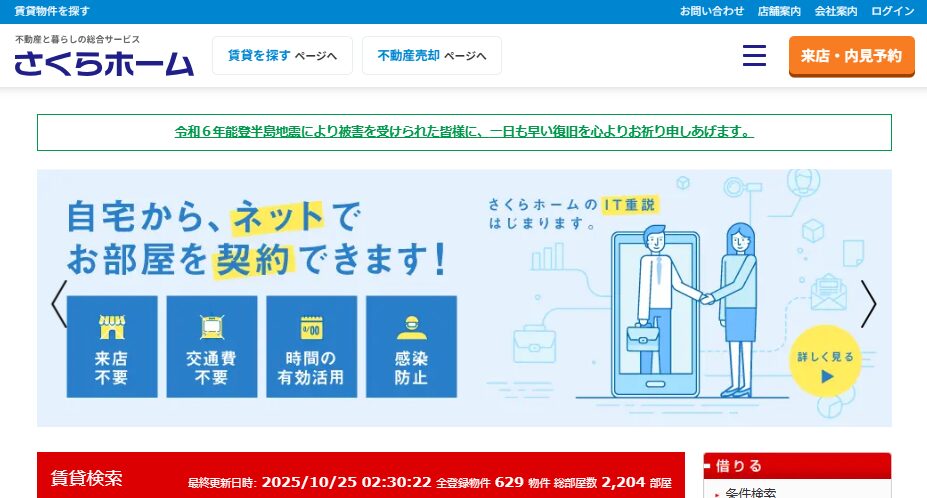 | さくらホーム 福井支店 | 地元に密着した売買・賃貸サポート | 福井市中心・近郊 | 約620件 | 敷金礼金ゼロあり | 築浅物件豊富 | - |