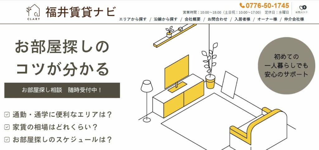 | 福井賃貸ナビ | 地元の賃貸情報を集約 | 福井県全域 | 約900件 | 敷金礼金ゼロあり | 検索・相談が簡単 | - |