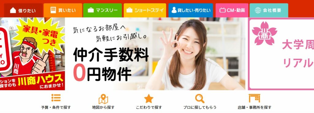 第1位:川商ハウス|敷金礼金ゼロ物件多数の地域密着型