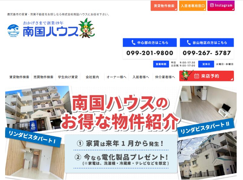 南国ハウス地域特化の不動産会社鹿児島市内中心・周辺エリア-敷金礼金ゼロあり多様な物件と地元ネットワーク要確認