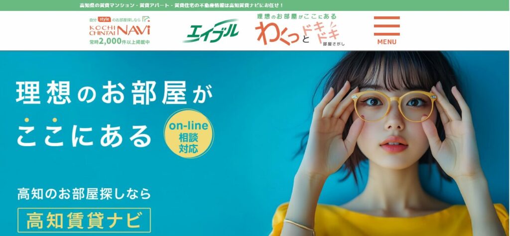 高知賃貸ナビはエイブル高知の運営する高知県内の賃貸物件検索サイトで、インターネット無料・ペット可・敷金礼金0円といった条件検索が充実しています。