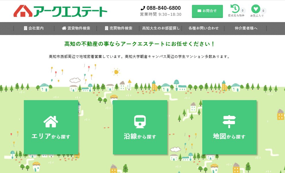 高知市内を中心に幅広い物件を取り扱い、単身者向けからファミリー向けまで豊富なラインナップが特徴です。