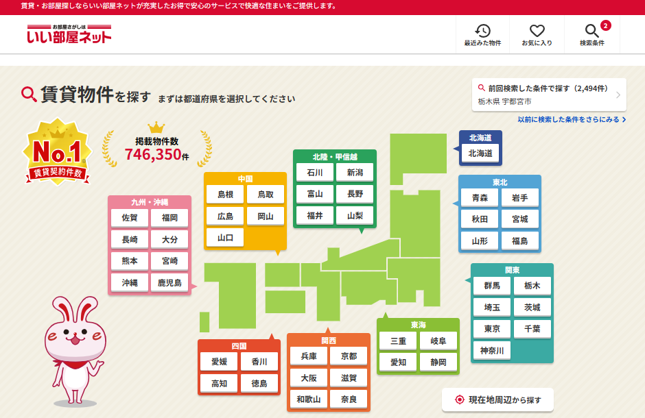 いい部屋ネット大手グループによる広範な物件紹介サイト全国対応約78万件敷金礼金ゼロあり物件情報の更新頻度が高い家賃1か月分