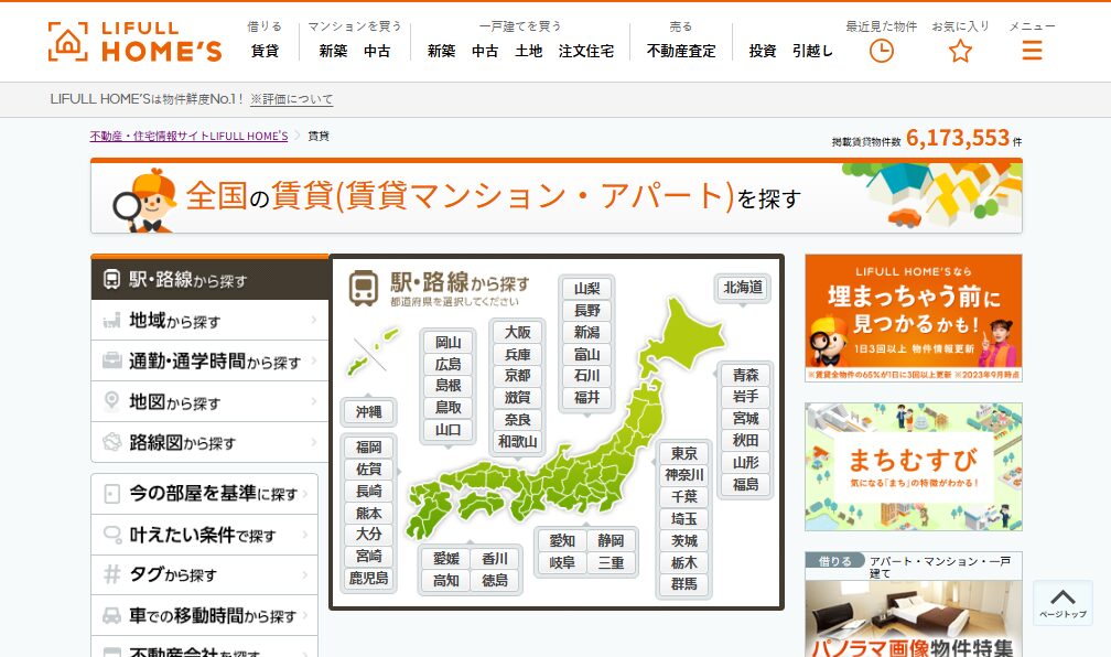 物件掲載数約600万件以上(敷金礼金ゼロあり)