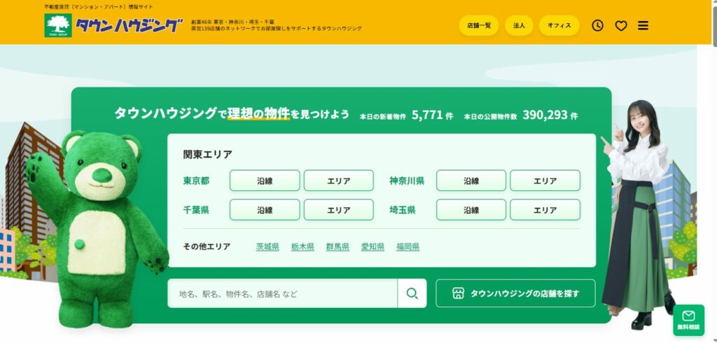 タウンハウジング家賃重視・駅近物件多数全国対応約41万件以上敷金礼金ゼロあり条件検索が便利家賃1か月分