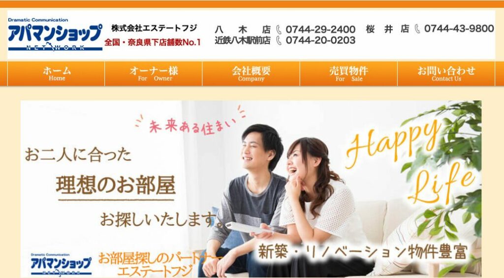 アパマンショップは全国展開の大手で、奈良県内でも広範囲のエリアと豊富な掲載数が強みです。