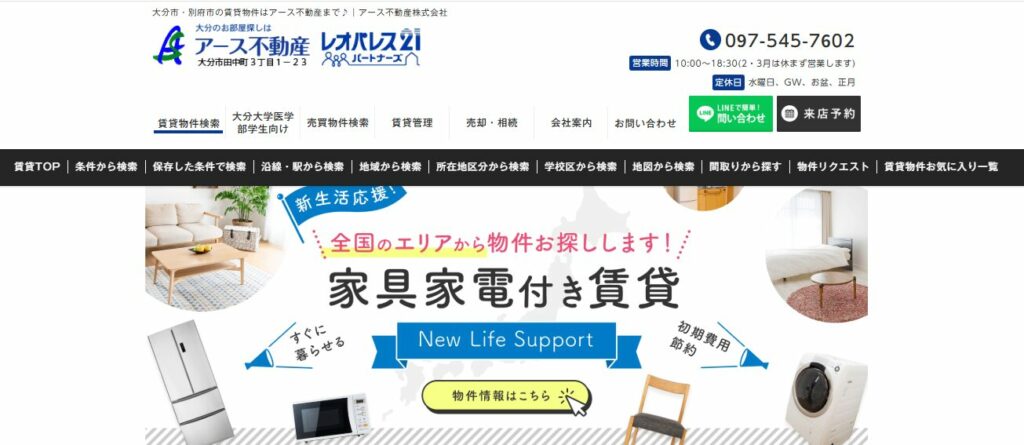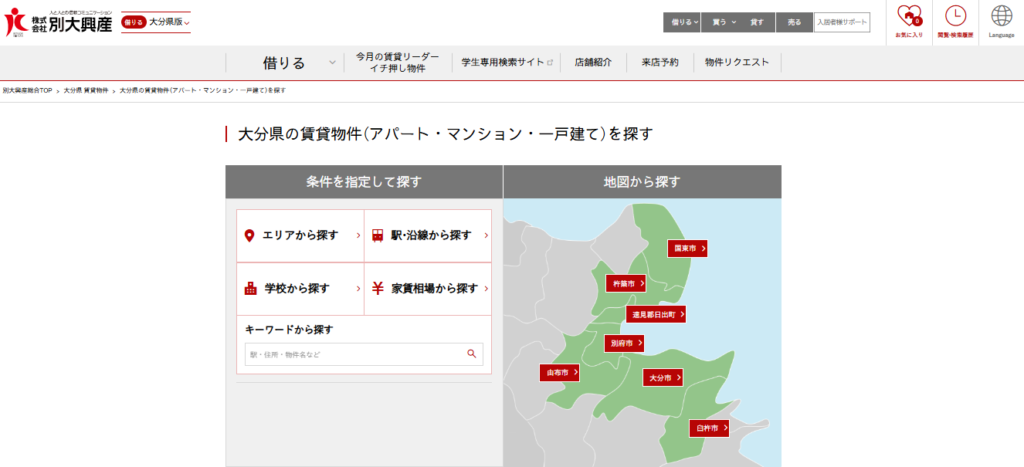 大分県にも支店があり、条件検索や比較検討がしやすく、初めての一人暮らしにも安心感を提供します。