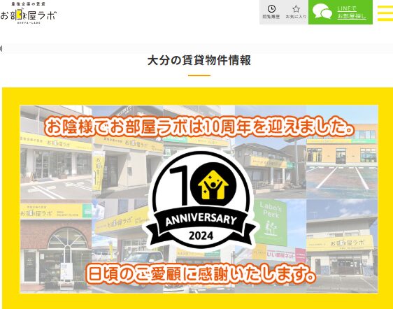 お部屋ラボ | 大分県に特化 | 大分県全域 | - | 要確認 | 幅広い物件ラインナップ | 要確認 |
