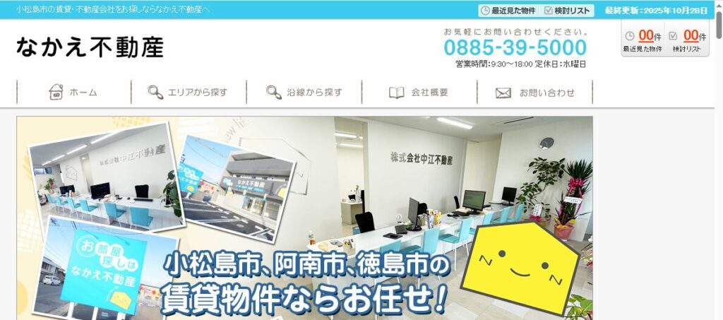 | なかえ不動産 | 徳島市中心の地元密着型 | 徳島市・小松島市・阿南市中心 | 約1,700件 | 敷金礼金ゼロあり | 地元情報に詳しく対応丁寧 | - |
