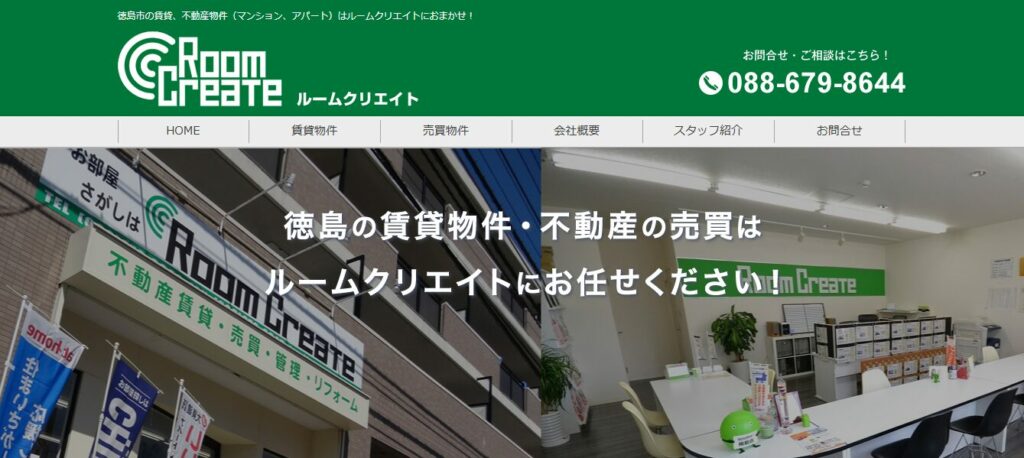 | Room Create | 若年層・単身向けに人気 | 徳島市及び周辺 | 約780件 | 敷金礼金ゼロあり | 提案力・対応スピード高 | - |