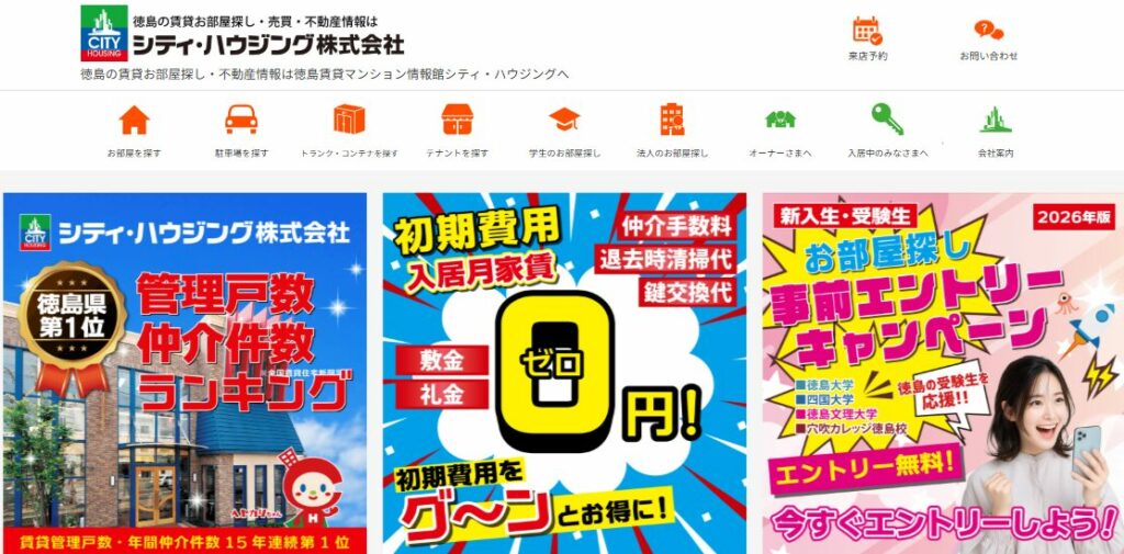 | シティー・ハウジング | 徳島密着で地域評価高い | 徳島県全域 | 約2000件 | 敷金礼金ゼロあり | 地域特化・サポート対応良好 | - |