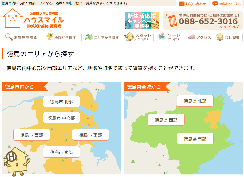 | ハウスマイル | 徳島密着の人気仲介会社 | 徳島市中心 | - | 敷金礼金ゼロあり | サポート親切・地元人気高 | - |