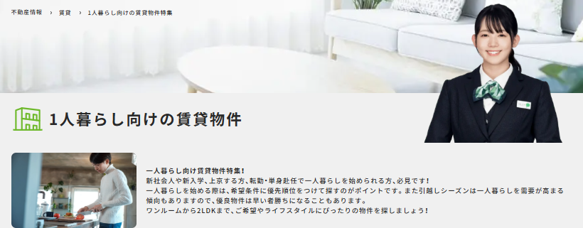 A: 駅近や家賃の安め設定、家具付き物件が多く、初めての一人暮らしでも快適に過ごせる設計です。
