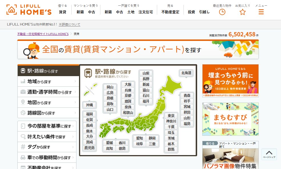 LIFULL HOME'S | 不動産情報サイト | 全国対応 | 約600万件以上 | 敷金礼金0あり | 豊富な物件情報、検索機能充実 | 家賃1か月分) |