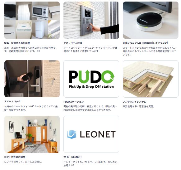 また、Wi-Fi完備や24時間サポート体制など、生活利便性を重視したサービスが充実しています。