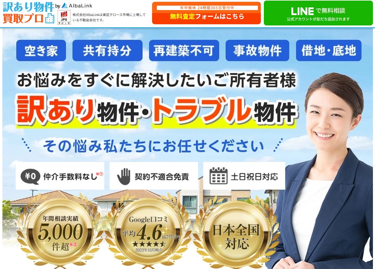 - アルバリンクは訳あり物件の買取実績が豊富で、東証上場も果たしている信頼できる不動産会社です。